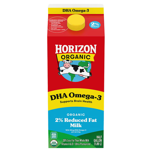 Horizon Organic DHA Omega-3 Milk, DHA 2 Percent Milk, Half Gallon Carton-64 fl. oz.